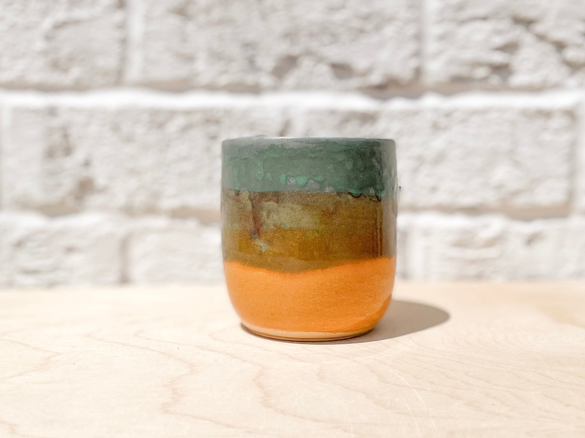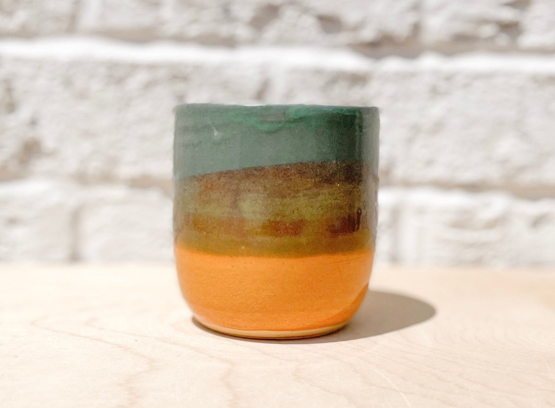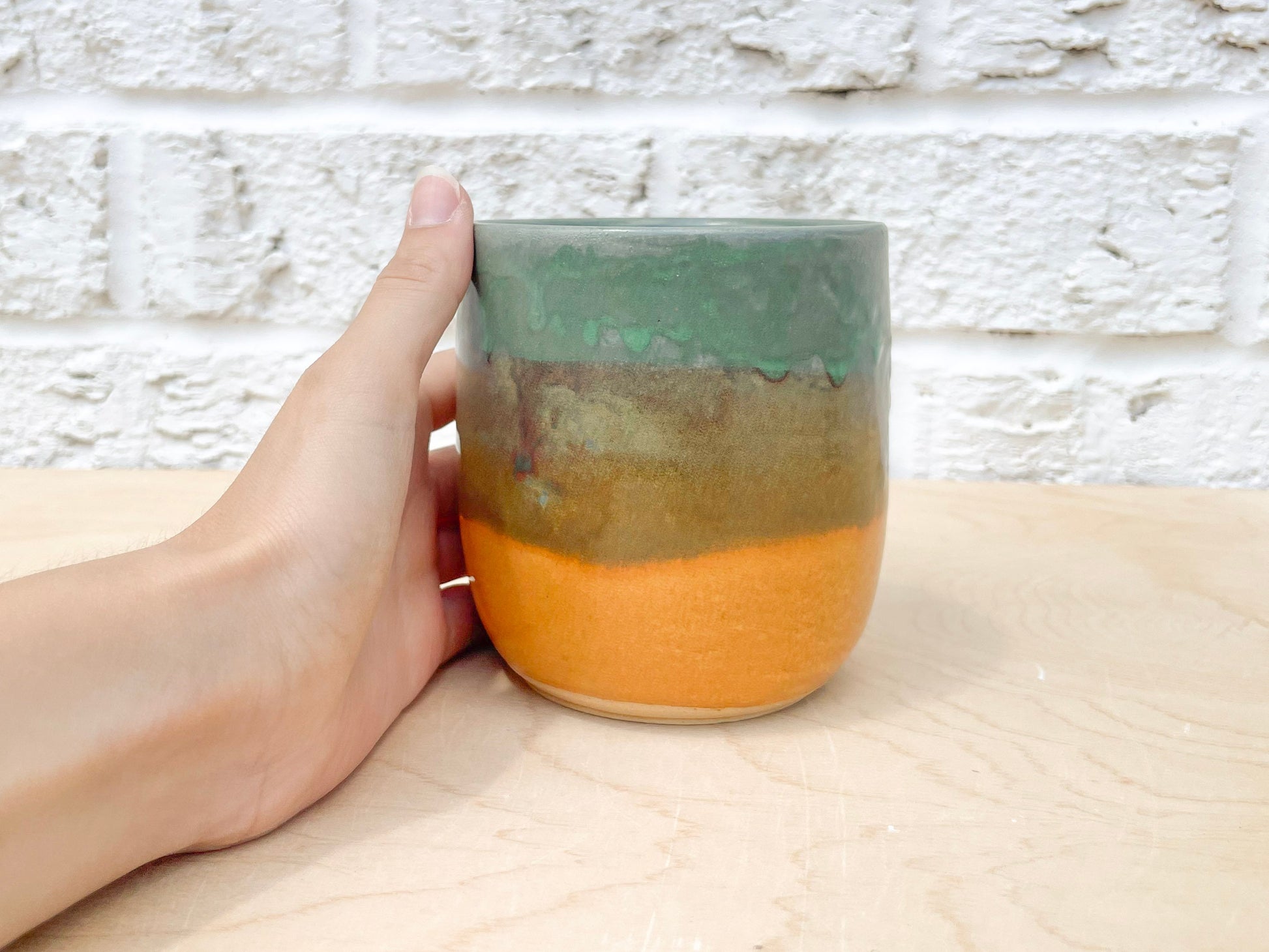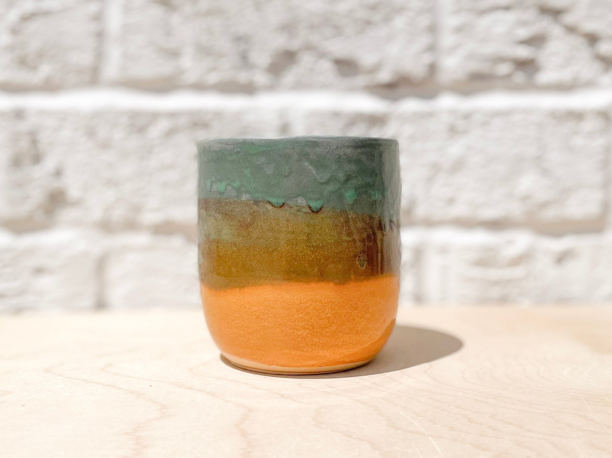Sky Tumbler, Sunset - This green and ochre wheel thrown stoneware tumbler would make the perfect housewarming gift for that beer or wine lover that you know.
