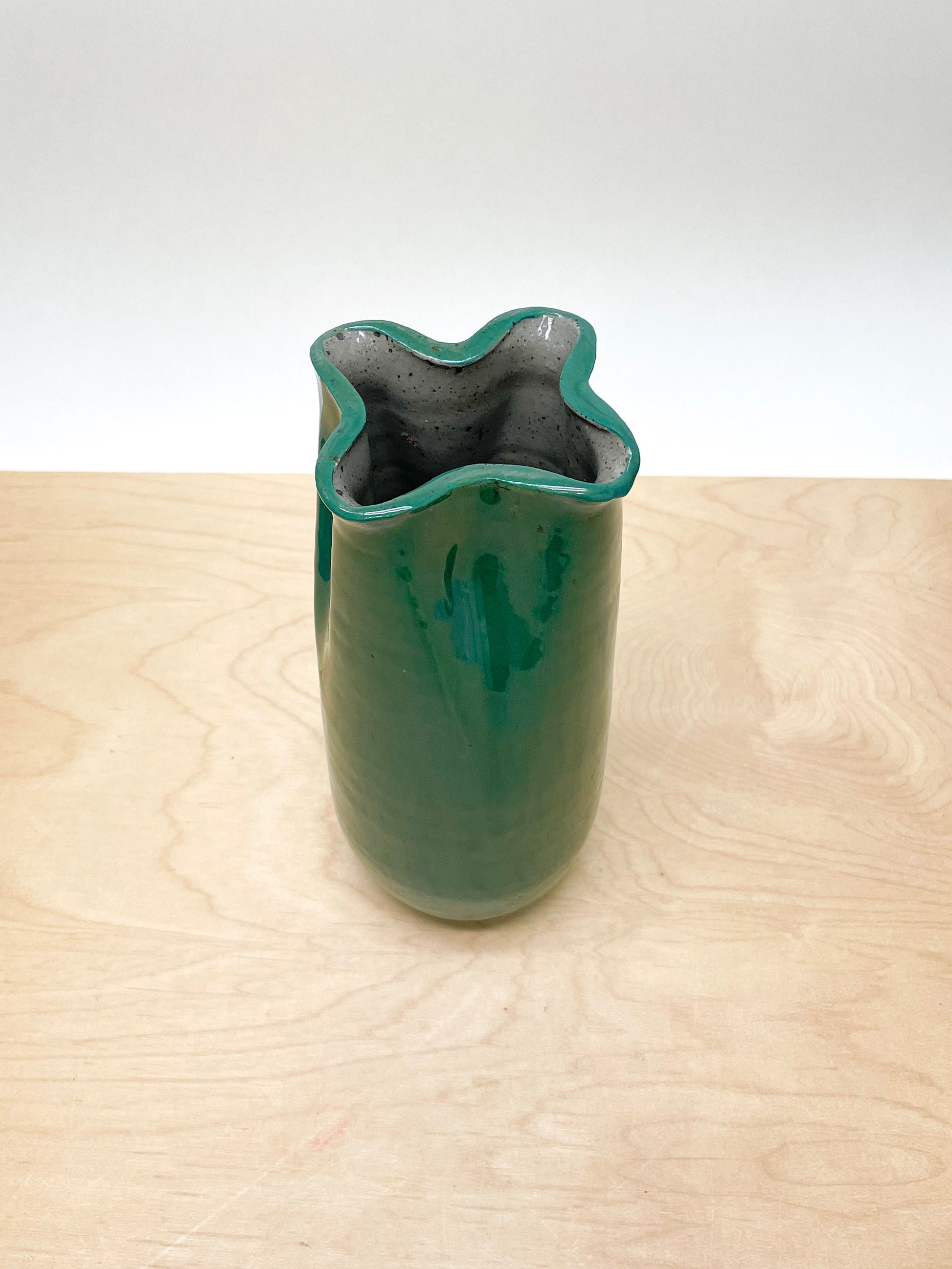 Tall Flower Vase, Emerald Green - this one of a kind, handmade stoneware vase, is a warm beige color that will complement any design style. Soft latte color is perfect for any neutral palette as well.